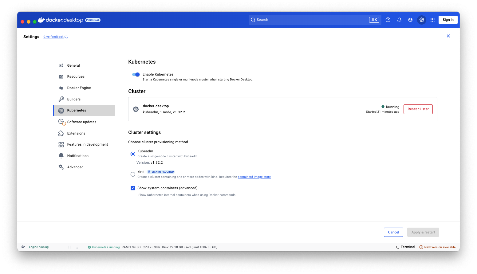 通过执行以下命令查看当前 macOS 系统 Kubernetes 节点配置信息