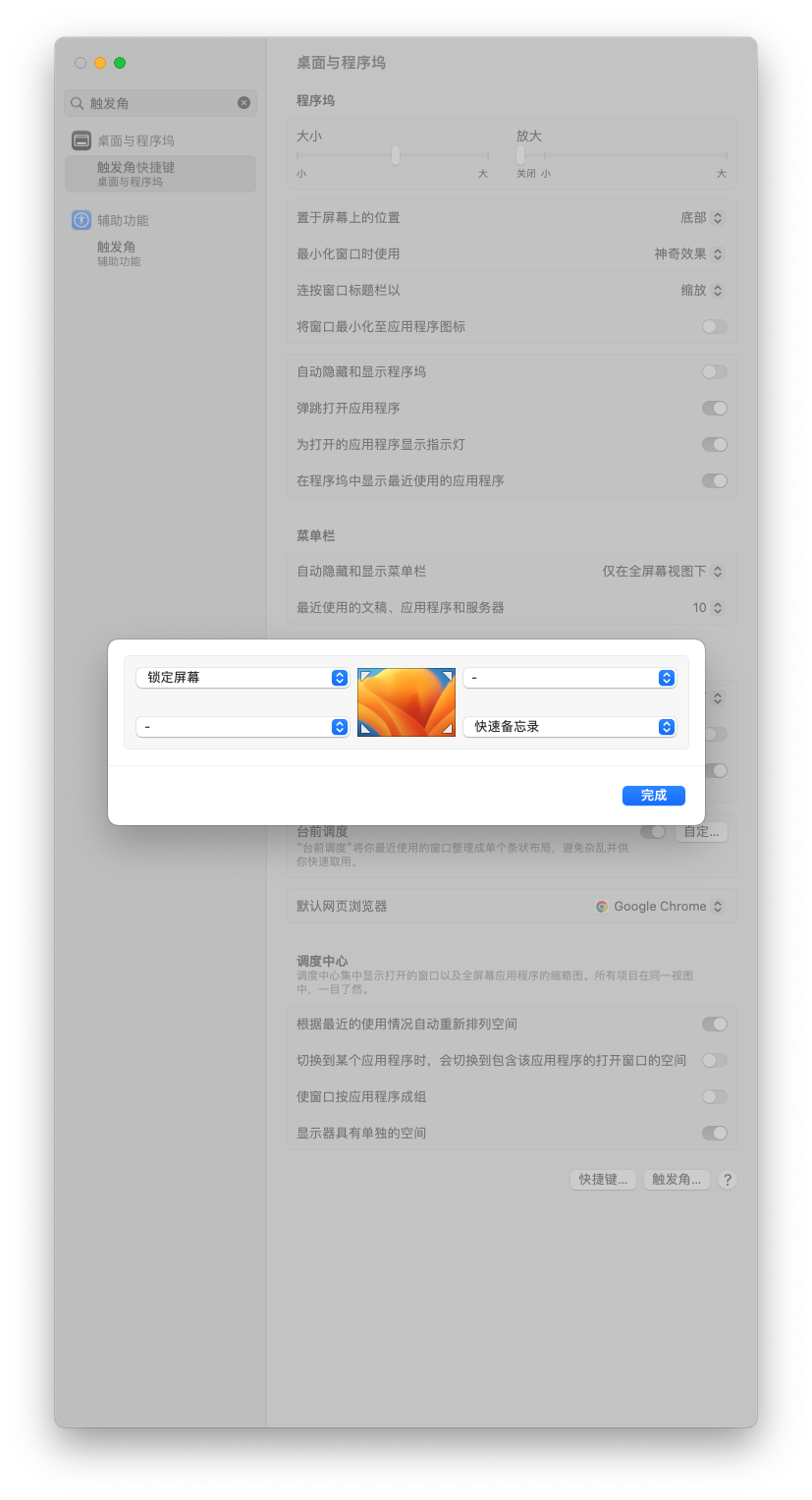 MacOS 系统 Ventura 版本通过触发角锁定屏幕